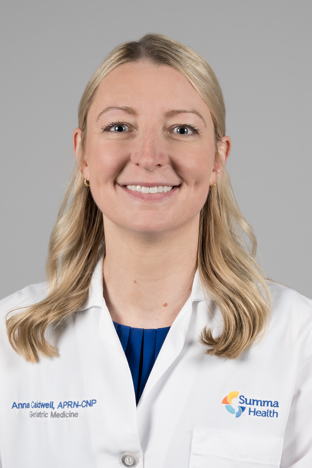 Anna Caldwell is a Nurse Practitioner in the specialty of Geriatrics at Summa Health. She completed a Master of Science in Nursing degree from Vanderbilt University and a Doctor of Nursing Practice degree from the Ohio State University. With a strong interest in geriatrics, she further completed a Geriatric Medicine fellowship at Atrium Health in Charlotte, NC and is a Certified Gerontological Specialist through the Gerontology Nursing Certification Commission. She currently practices outpatient geriatric medicine at the Summa Senior Health Center and inpatient on the Geriatric inpatient consult service.