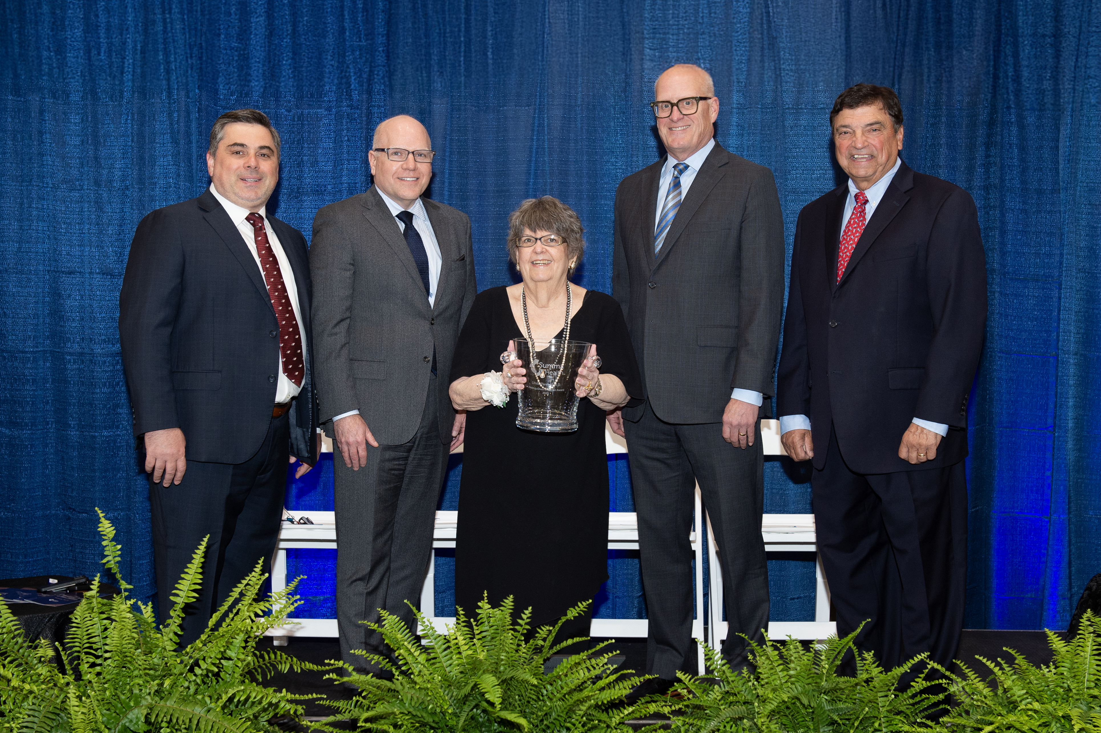 Dr. Parenti was recognized at a special reception hosted by Summa Health Medical Staff on Wednesday, May 28, in the Leuchtag Lobby of the Ann and David Brennan Pavilion on the Summa Health – Akron Campus. Surrounded by colleagues, leaders, family members and friends, she received the award from George Strickler, chair, Summa Health Board of Directors; Cliff Deveny, M.D., president and chief executive officer, Summa Health; Charles Zonfa, M.D., interim president of Summa Health System Hospitals and senior vice president and chief quality officer at Summa Health; and Adrian Dan, M.D., president, Summa Health Medical Staff.